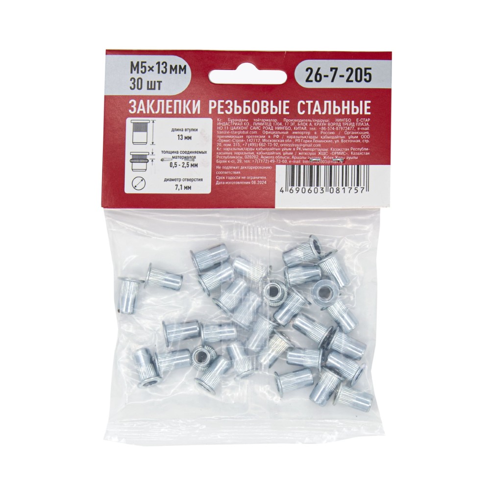 Резьбовые заклепки «РемоКолор» – надежный выбор мастеров! Идеально подходят для прочного соединения различных материалов благодаря метрической резьбе М5? Длина 13 мм обеспечивает оптимальное сцепление без лишних затрат материала. В упаковке 30 шт., что идеально подходит как для домашних ремонтных работ, так и небольших профессиональных проектов. Удобно приобрести все необходимое количество в одном месте по доступной цене!
