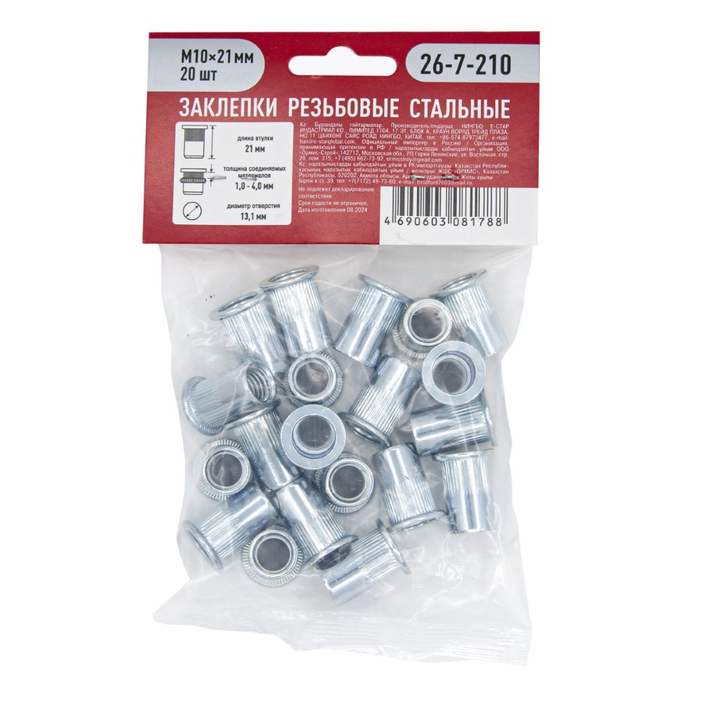 Резьбовые заклепки «РемоКолор» – надежный помощник при любых строительных работах! Моментальный монтаж без сверления отверстий, высокая прочность соединения благодаря стали высокого качества и современной технологии фиксации. Размер М10 обеспечивает устойчивость к значительным нагрузкам. Компактная упаковка содержит 20 шт., что идеально подходит как для профессионального ремонта, так и для домашних нужд. Сделайте выбор в пользу надежности вместе с «РемоКолор»!