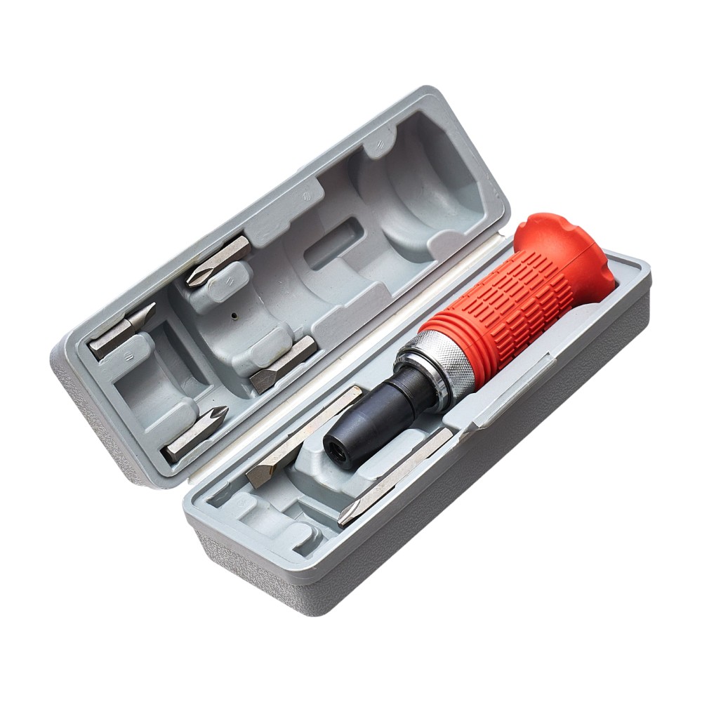 Ударно-поворотная отвёртка от бренда «РемоКолор» — идеальный помощник мастера! Подходит для профессиональных работ и домашних ремонтов! Комплект из 8 прочных бит CR-V обеспечит надёжное крепление и долговечность работы инструмента. Удобный чехол позволяет хранить и транспортировать комплект без риска повреждения. Выбирайте качество и комфорт вместе с «РемоКолор»!