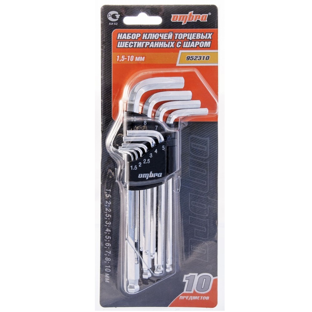 гловые шестигранники 10 шт.: 1,5; 2; 2,5; 3; 4; 5; 6; 7; 8; 10 мм.;