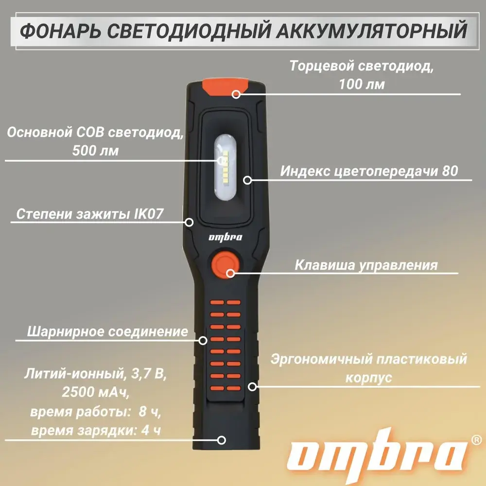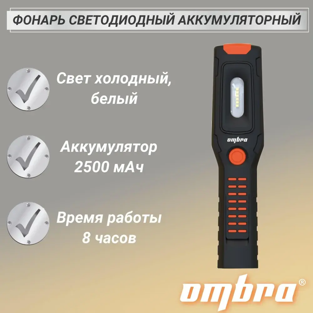 Ombra A90062 – это надежный ручной фонарь с мощным световым потоком (до 600 люмен), обеспечивающий яркое освещение пространства. Прибор оснащен аккумулятором, что обеспечивает продолжительную работу без замены элементов питания. Удобная форма корпуса позволяет надежно удерживать устройство даже мокрой рукой. Прочный материал конструкции защищает от механических повреждений и влаги. Идеально подходит как для бытового использования дома и на даче, так и профессионального применения при ремонтных работах.