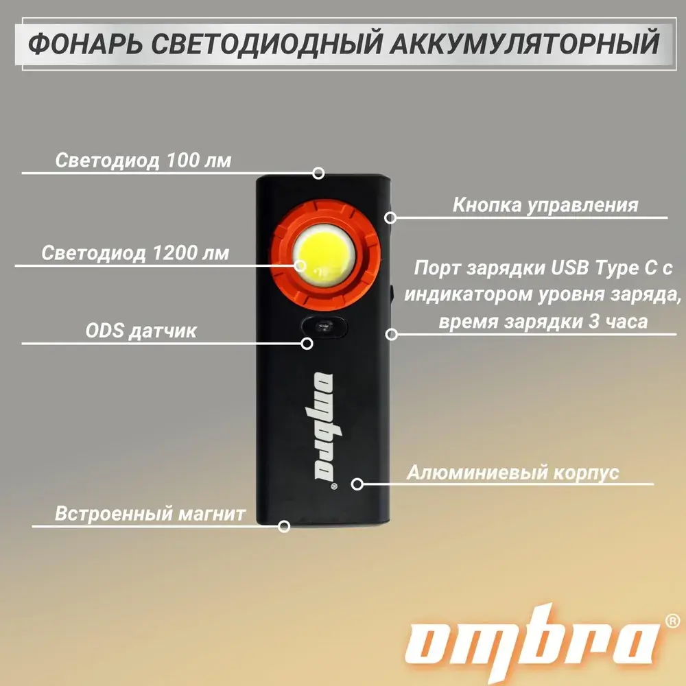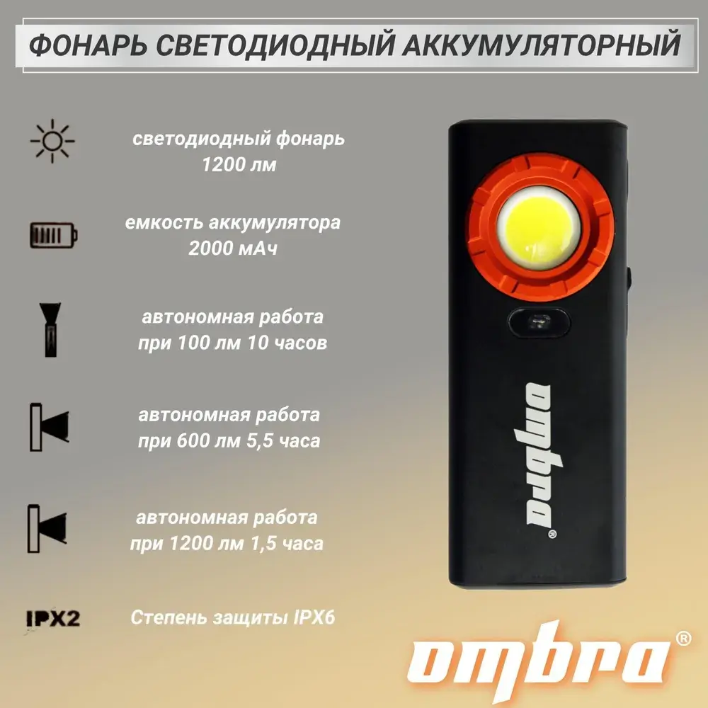 Ombra A90067 – это мощный ручной фонарь с яркостью светового потока 1200 люмен, обеспечивающий эффективное освещение пространства. Идеально подходит как для бытового использования дома и на даче, так и профессионального применения при ремонтных работах или строительстве Компактные размеры и встроенный аккумулятор позволяют легко носить его с собой, обеспечивая мобильность и автономность в любых условиях.
