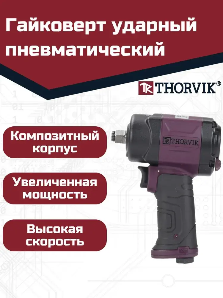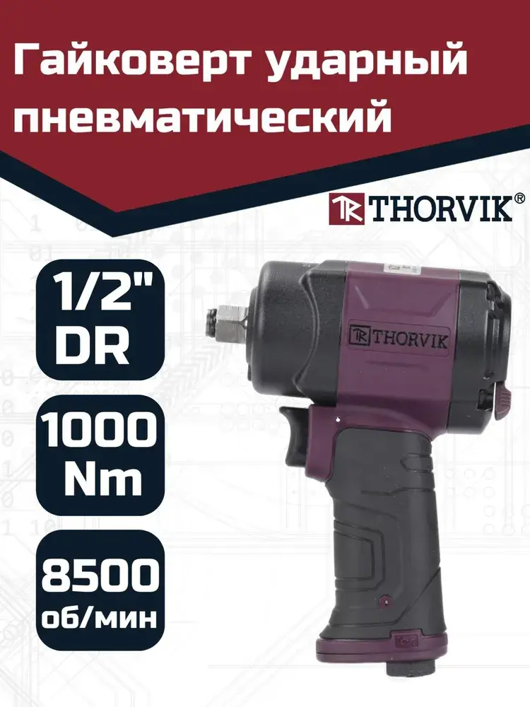 Гайковёрт ударный пневматический Thorvik AIW1210C – мощный помощник профессионального уровня! Удобство и высокая эффективность работы обеспечены частотой вращения 8500 об/мин и крутящим моментом 1000 Нм. Компактные размеры делают его идеальным выбором как для профессионалов, так и любителей ремонтных работ на даче или дома. Надежность бренда Thorvik гарантирует долговечность инструмента. Купить гайковёрт – значит ускорить ремонт и повысить качество соединений!