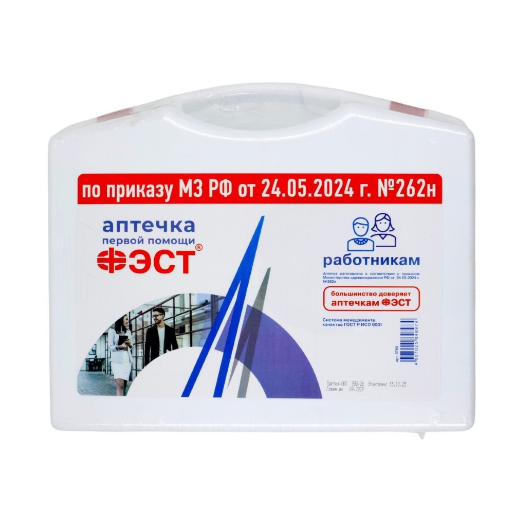 Современная аптечка «ФЭСТ» соответствует приказу №262н — ваш надежный помощник в любой ситуации! Удобный футляр формата 8-2 обеспечивает быстрый доступ к необходимым медикаментам и средствам оказания первой помощи. Компактные размеры позволяют хранить её как в офисе, так и транспорте. Совершенное решение для безопасности сотрудников по доступной цене!