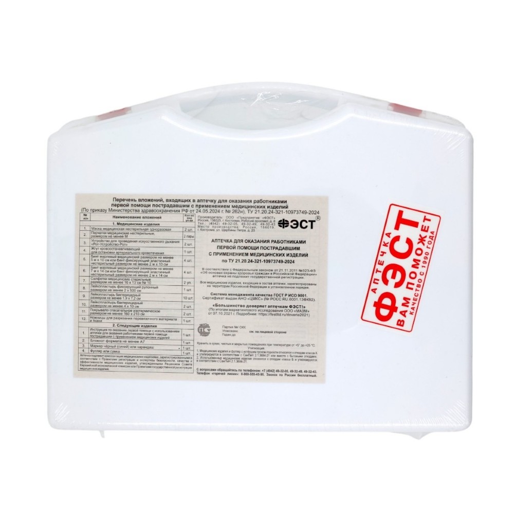 Аптечка изготовлена в соответствии с приказом Министерства здравоохранения РФ от 24.05.2024 г. №262н