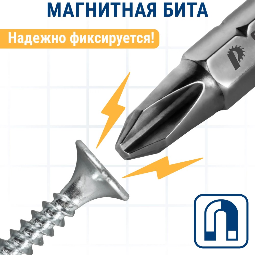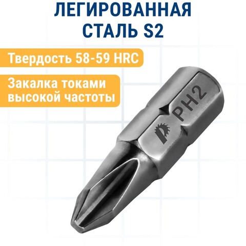 Насадки отверточные PH2 Практика "Профи" — выбор профессионалов! Упаковка 100шт. Сталь CrV-S2, закалка ТВЧ до 58-59HRC. Проточка головной части для работы в стесненных условиях. Идеальная фиксация в шлице, магнит удерживает крепеж. Полированная боковина. Продумано до мелочей для комфортной работы с гипсокартоном, деревом и металлами!