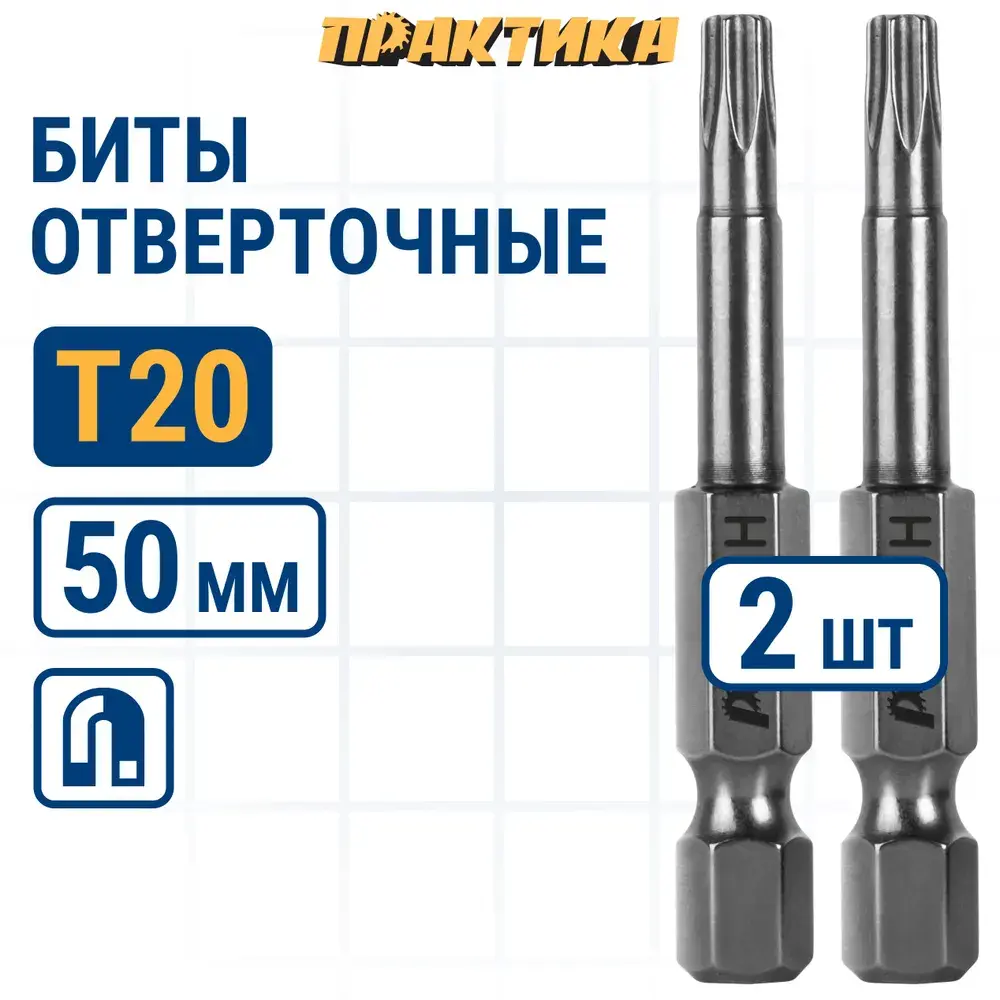 Бита отверточная ПРАКТИКА "Профи" Torx Tamper-20 х 50мм (2шт), блистер (776-454)