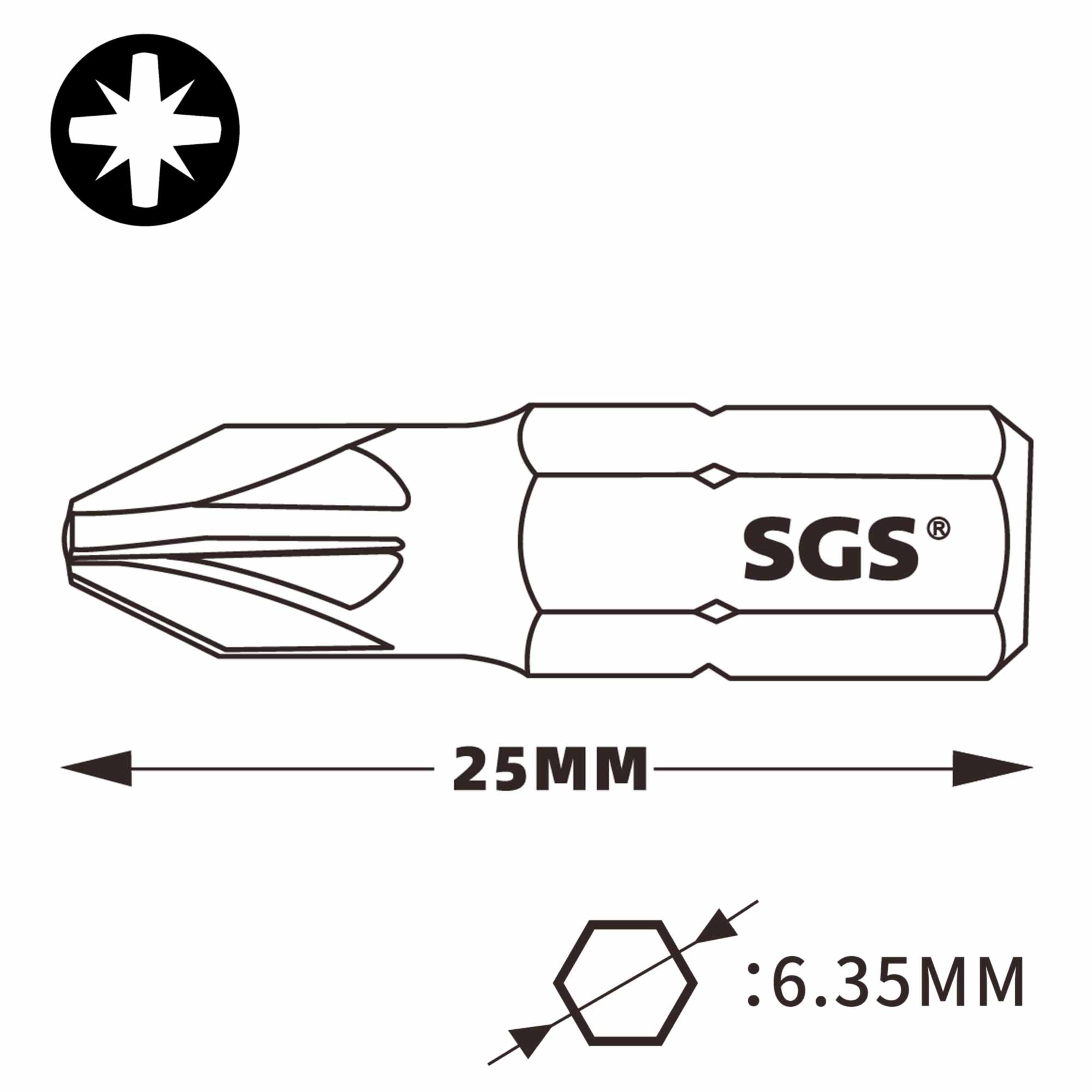 Бита PZ2 х25мм магнитная S2 SGS 6325-PZ2-Anti-Slip