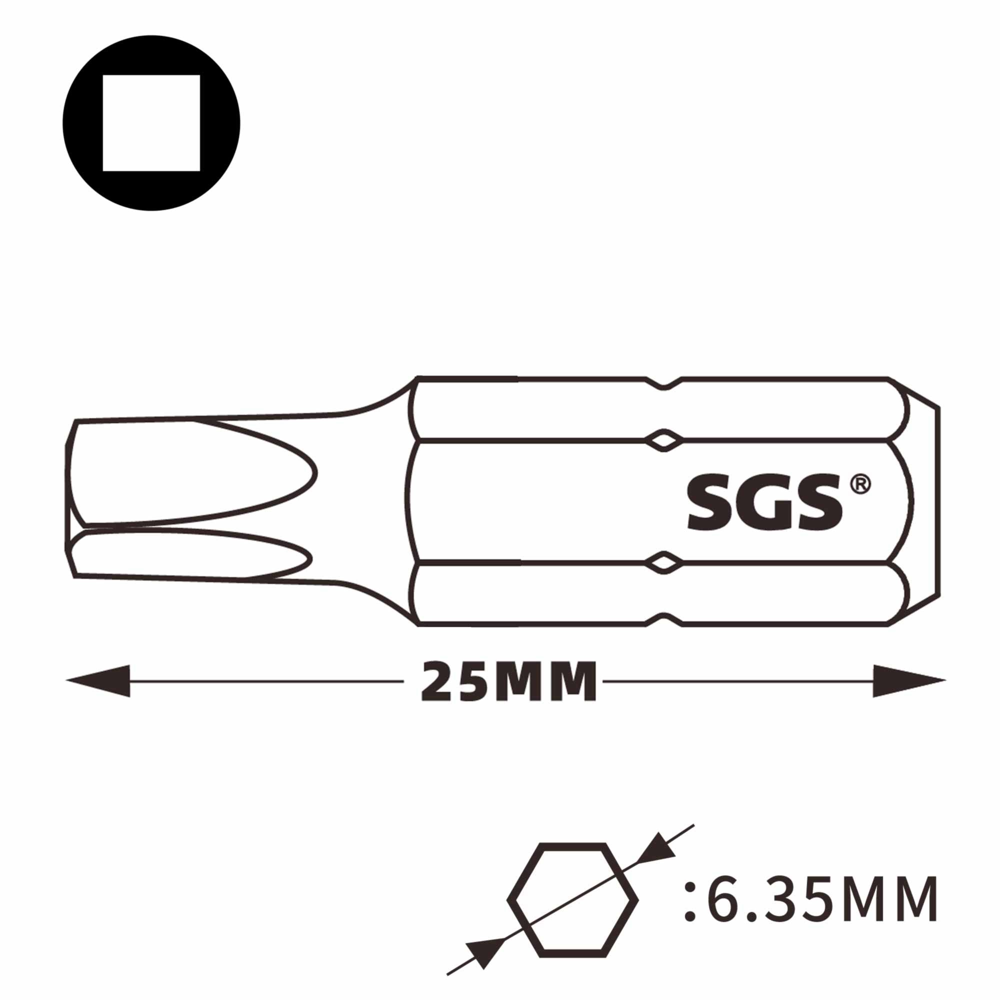Бита Robertson SQ №1(2,3мм) х25мм Impact(ударная) S2 SGS 6325SQ1-IB