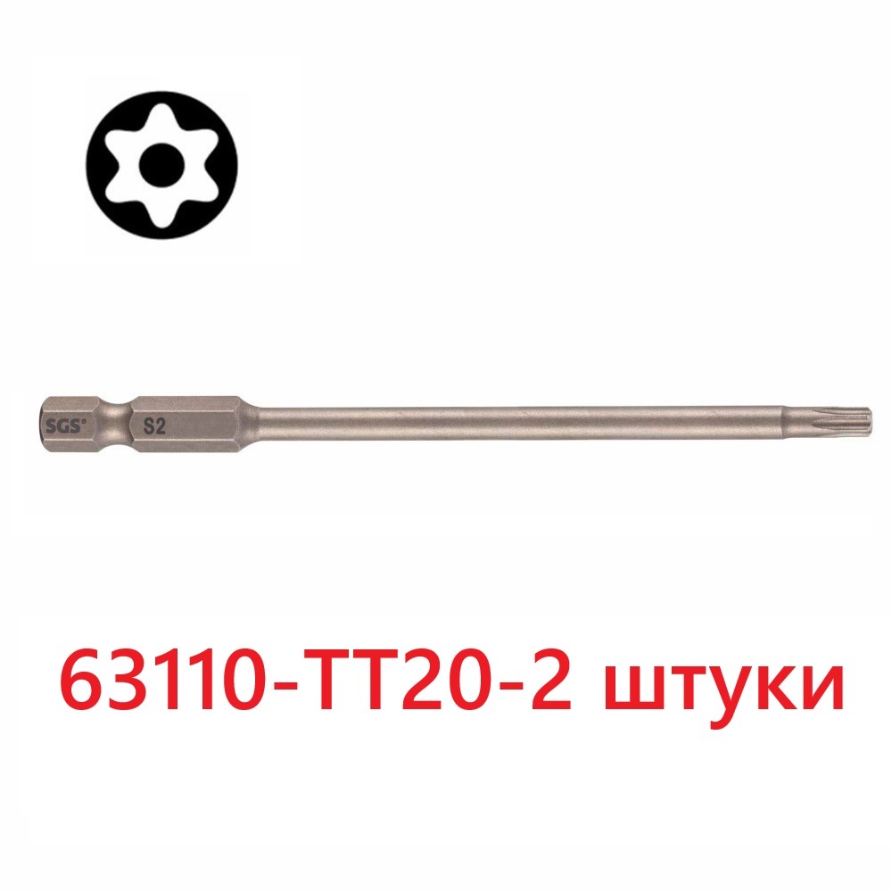 Бита T20H х110мм TORX TR (с отверстием) S2 2шт SGS 63110-TT20-2