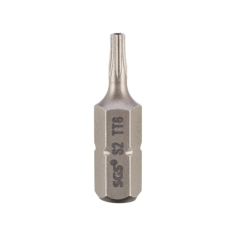 **SGS 6325-TT30 – профессиональная бита типа HEX-TR40** предназначена для работы со специализированными крепежными элементами. Изготовлена из прочной стали марки *S2*, что обеспечивает долговечность использования даже при интенсивных нагрузках. Двухсторонняя конструкция позволяет выполнять задачи быстрее, сокращая время выполнения работ. Особая форма наконечника *Torx* гарантирует надежное сцепление с головкой винта без риска повреждения как самой биты, так и крепления. Идеальный выбор для профессионалов ремонтно-строительных работ!
