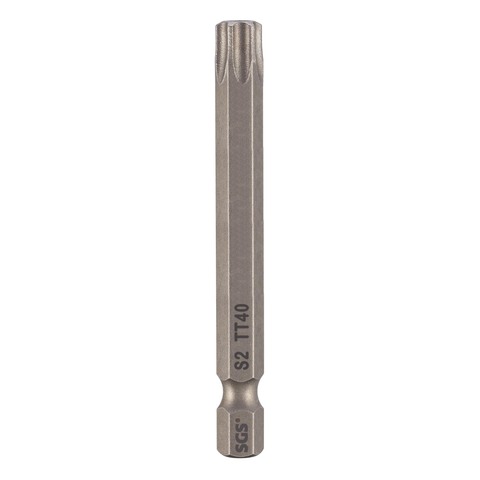 **SGS 6365-TT40** – профессиональная бита типа *TR40* от проверенного бренда SGS. Длина рабочей части составляет 65 мм; оснащена сквозным отверстием для удобного хранения и транспортировки. Идеально подходит для работы с крепежом в труднодоступных местах благодаря своему типоразмеру и форме наконечника Torx. Подходит как для домашнего использования, так и при выполнении сложных строительных задач. Обладает высокой прочностью и долговечностью, что делает её незаменимой в наборе инструментов мастера.