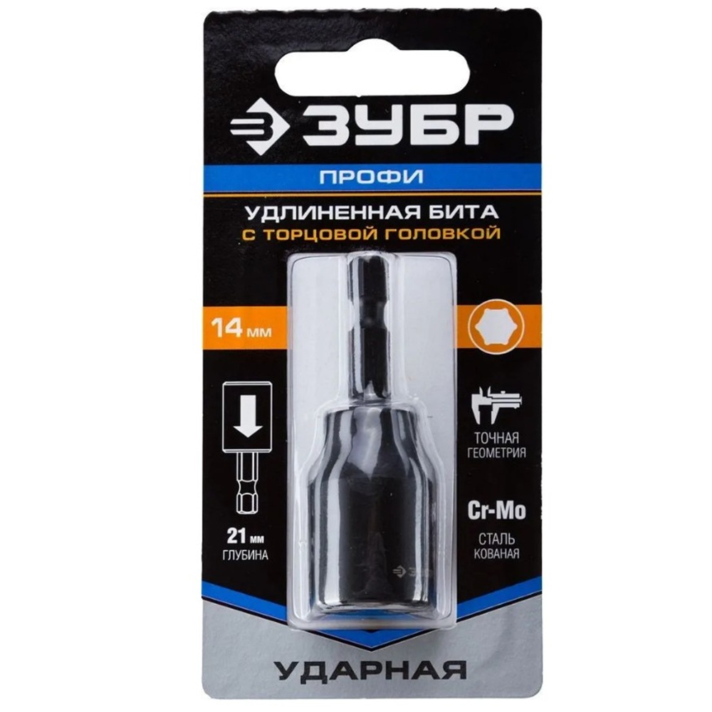 ЗУБР 14 мм, 60 мм, удлиненная, ударная бита с торцевой головкой, Профессионал (26377-14)