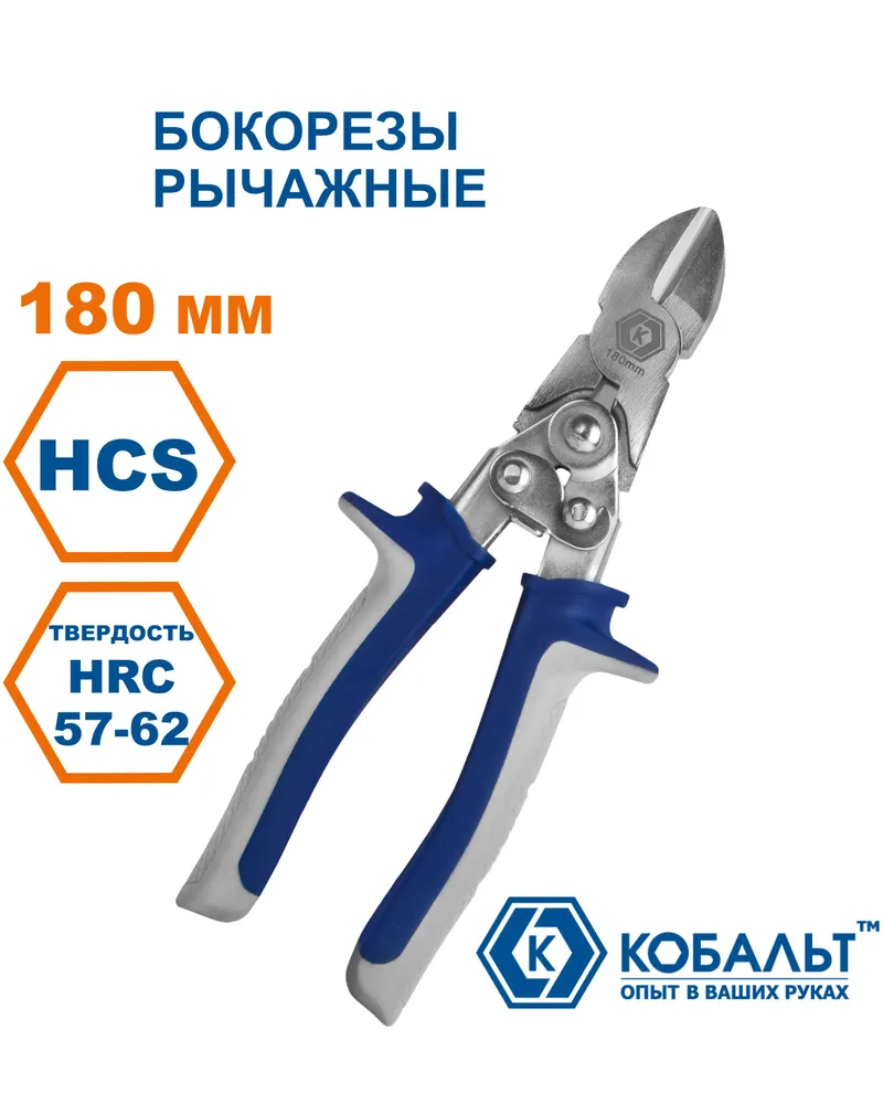 Бокорезы рычажные 180 мм КОБАЛЬТ 244-186, предназначены для резки вязальной проволоки и проволоки из цветных металлов, электрических проводов небольшого сечения. Наиболее удобны при производстве электротехнических работ и прочих подобных действий связанных с монтажом, эксплуатацией и ремонтом проводки, техники и оборудования. Двойная рычажная конструкция позволяет в 2,2 раза уменьшить усилие на рукоятках по сравнению с обычными бокорезами. Изготовлены из хром-ванадиевой (Cr-V) инструментальной стали с закалкой губок до 57-60 HRC. Удобные, изолированные двухкомпонентными чехлами рукоятки повышают комфортность работы.