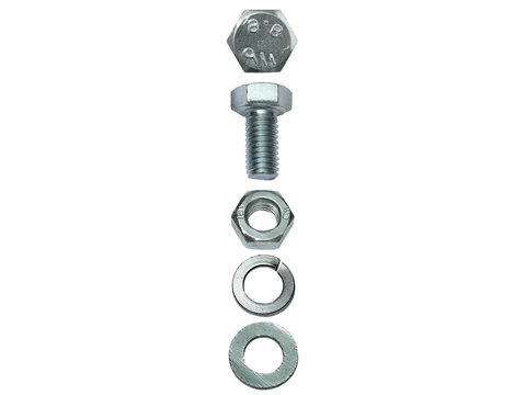 Болт (DIN933) в комплекте с гайкой (DIN934), шайбой (DIN125), шайбой пруж. (DIN127), M10 x 80 мм, 2 шт, ЗУБР/ • Набор состоит из болтов с шестигранной головкой DIN 933, гаек шестигранных DIN 934, гроверных шайб DIN 127 и плоских шайб DIN 125 • Шестигранная головка болта позволяет создавать высокий крутящий момент при затягивании соединения • Класс прочности 8.8 придает конструкции повышенную прочность • Гроверные шайбы предотвращают раскручиваение соединения. Плоские шайбы предназначены для увеличения площади соединения и распределения давления на опорную поверхность • Цинковое покрытие надежно защищает от коррозии и продлевает срок службы изделий Применяется для резьбового соединения деталей и конструкций в строительстве и машиностроении.