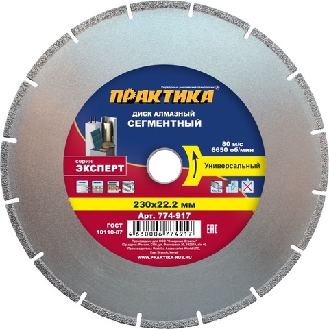 Диск алмазный сегментный ПРАКТИКА "Эксперт-Универсал" 230 х 22 мм, сегмент 10мм (1 шт.) ко (774-917)