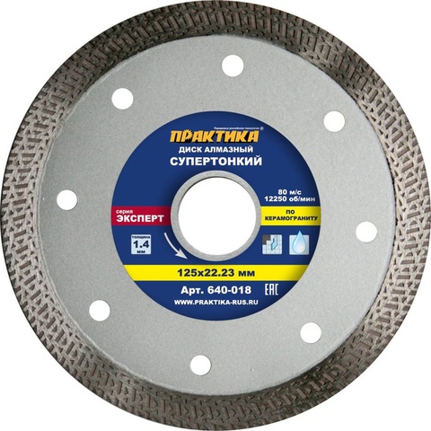 Диск алмазный турбированный ПРАКТИКА "Супер тонкий" 125 х 22 мм, толщина 1,4 мм, по керамограниту