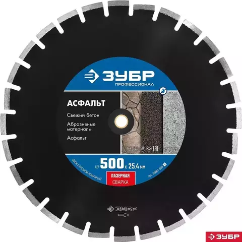 ЗУБР Асфальт, 400 мм, (25.4/20 мм, 10 х 3.4 мм), сегментный алмазный диск, Профессионал (36667-400)