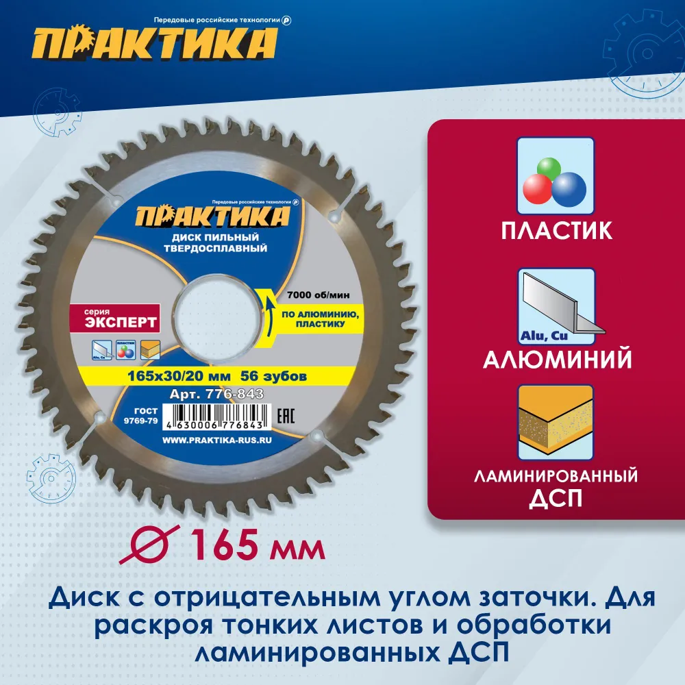 Твердосплавный диск пильный ПРАКТИКА 165х30/20 мм — ваш надежный помощник при работе с алюминием! 56 прочных зубьев обеспечивают безупречное качество распила и долговечность использования. Изготовлен в Китае известным брендом «ПРАКТИКА». Идеально подходит для владельцев электроинструмента и профессионалов своего дела. Добавьте к своему арсеналу качественный расходник прямо сейчас и оцените его эффективность самостоятельно!