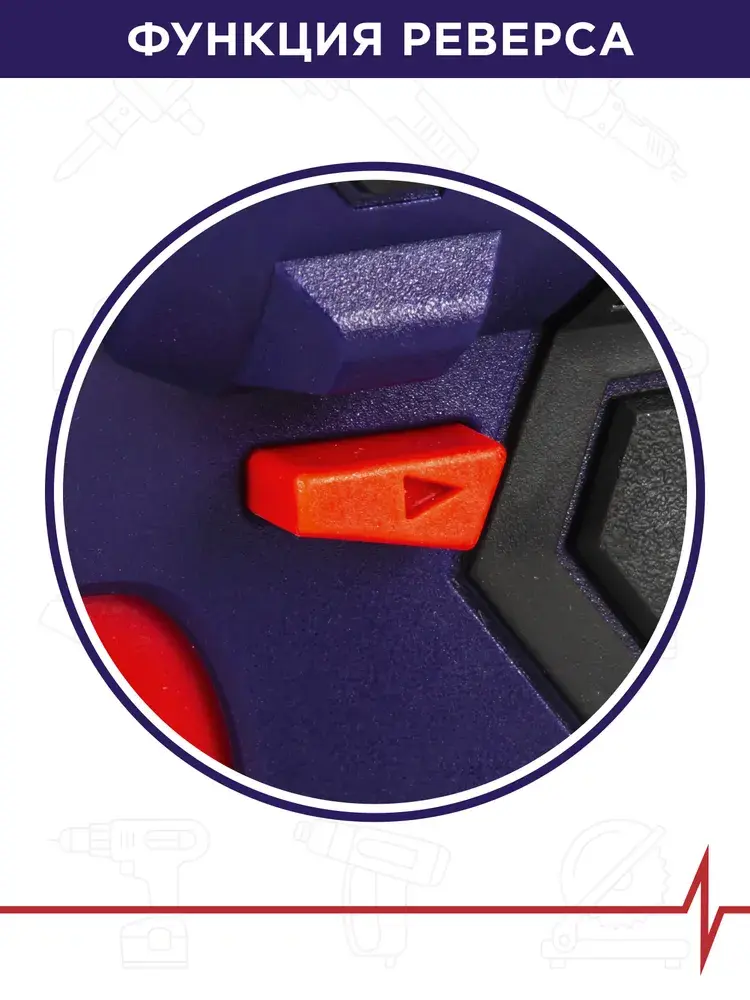 Особенности модели: быстрое зарядное устройство, эргономичный дизайн корпуса со встроенной светодиодной подсветкой рабочей зоны. Комплект поставки включает два аккумулятора, удобный кейс для хранения и транспортировки инструмента.