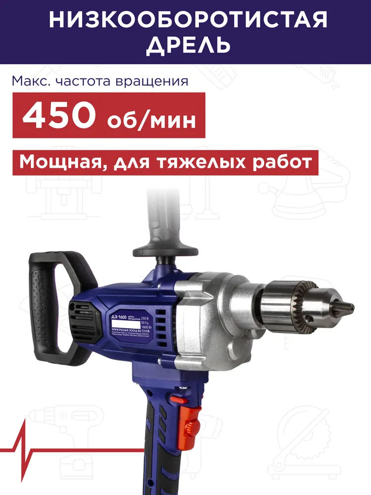 Безударная дрель ПУЛЬСАР ДЭ 1600 — ваш надежный помощник дома и на даче! Мощность 1600 Вт обеспечивает легкость работы даже с твердыми материалами. Регулировка скорости от 0 до 450 оборотов позволяет точно подобрать режим под конкретную задачу. Удобство использования гарантировано эргономичной рукояткой и компактными размерами. Подходит для сверления отверстий различного диаметра благодаря сменному 16-миллиметровому патрону. Идеальна как для профессионалов, так и начинающих мастеров!