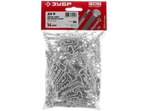 ЗУБР ДХ-П, 14 мм, нейлон, 100 шт, дюбель-хомут для плоского кабеля (30912-14)