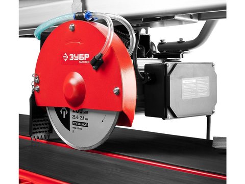 Электроплиткорез ЗУБР "МАСТЕР", длина реза 920 мм, диск 200 мм, глубина реза 90°-32мм/45°-28мм, стол 960x400 мм, 1000Вт - предназначен для точной резки всех видов плитки. Подвижная головка диска имеет профессиональную конструкцию подшипникого узла, что обеспечивает высокую точность линии реза и мягкий ход каретки. Подвижная головка диска способствует большей безопасности и удобству в работе. Профессиональная конструкция подшипникового узла гарантирует плавное передвижение каретки и высокую точность реза. Возможность пиления на заданную глубину. Точная установка разрезаемой плитки благодаря фиксирующему упору со шкалой. Водяное охлаждение предотвращает порчу распиливаемого материала и исключает образование вредной пыли при работе. Возможность прямого пиления под углом от 0 до 45°, косого в пределах до 90°, а также комбинированного. Не требующий обслуживания асинхронный двигатель прост в эксплуатации. Для безопасной работы предусмотрены защитное заземление и электромагнитный выключатель.