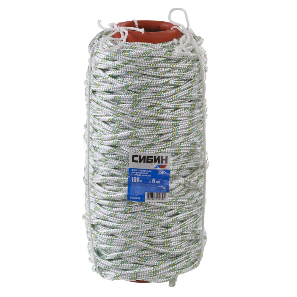 СИБИН d 6 мм, 16-прядный, 100 м, плетеный, с сердечником, капроновый фал (50220-06)