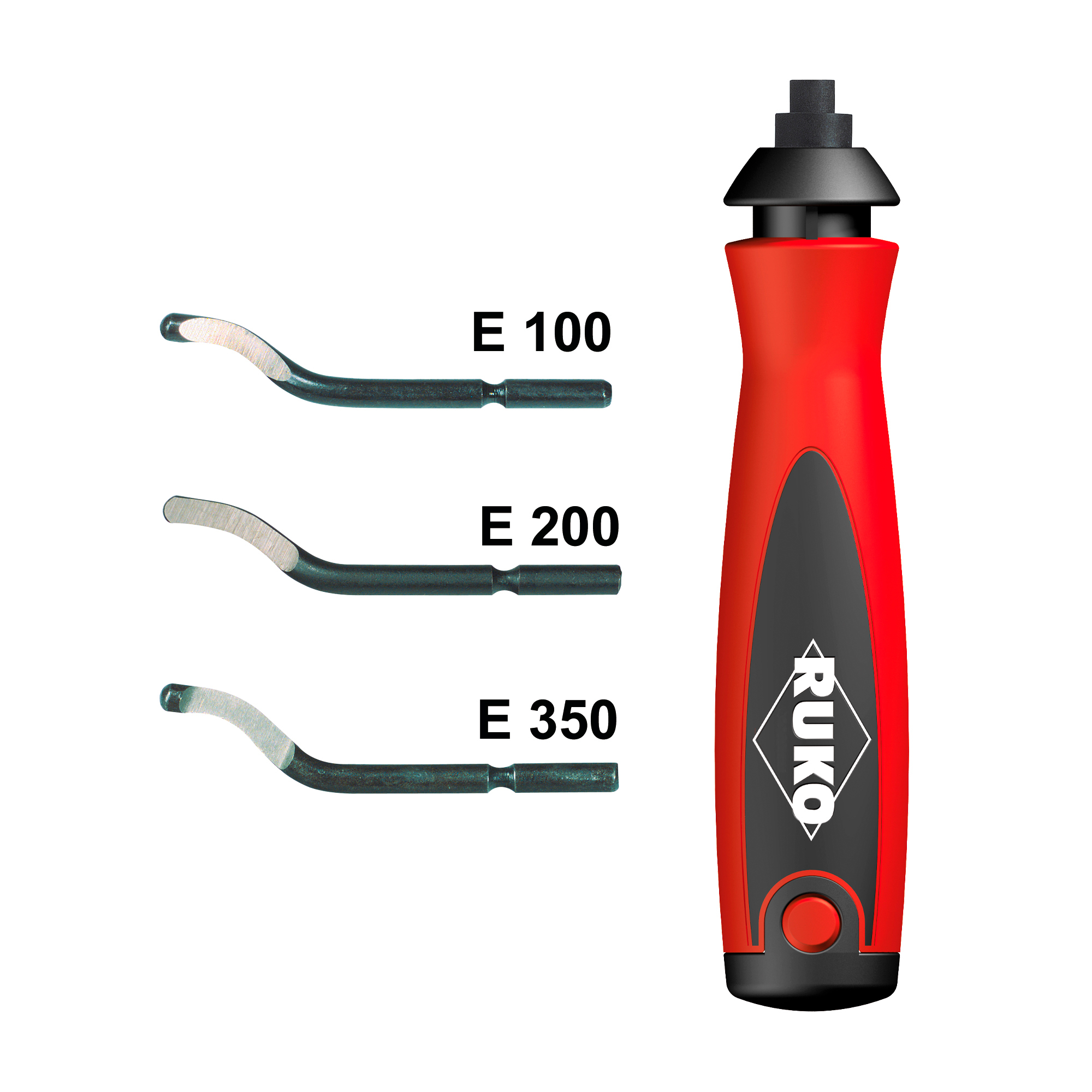 Пластмассовая ручка , приспособленная для хранения запасных лезвий. Сменные лезвия: E100 HSS d.3,2мм 107026 используется для внутренних и внешних работ по материалам, образующим длинную стружку, таким как сталь, алюминий, пластик, подходит для фаскоснимателей Ruko 107050, 107051, 107054. E200 HSS d.3,2мм 107027 используется для внутренних и внешних работ по материалам, образующим короткую стружку, таким как латунь, чугун, подходит для фаскоснимателей Ruko 107050, 107051, 107054. E350 HSS d.3,2мм 107029 используется для снятия фаски с прямой кромки, шпоночной канавки, подходит для фаскоснимателей Ruko 107050, 107051, 107054.