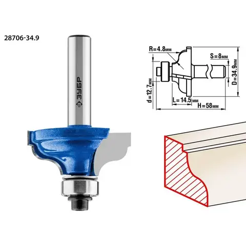 Фреза кромочная ЗУБР 34,9x15мм, радиус 4.8мм, калевочная №5.