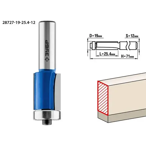 Фреза кромочная ЗУБР 19x25.4мм, хвостовик 12мм, с нижним подшипником.