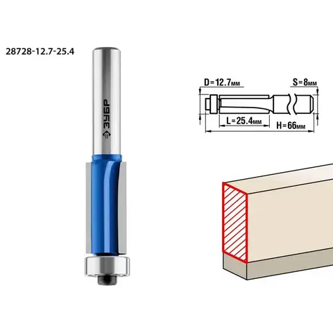 Фреза кромочная ЗУБР 12.7x25.4мм, хвостовик 8мм, с нижним подшипником (3 лезвия).
