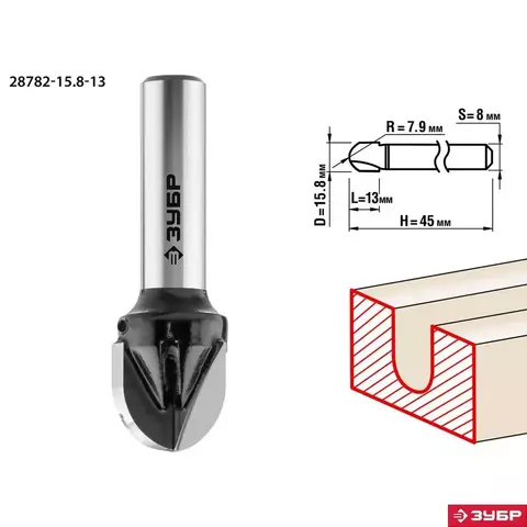 ЗУБР 15.8 x 13 мм, радиус 7.9 мм, фреза пазовая галтельная 28782-15.8-13 Профессионал.
