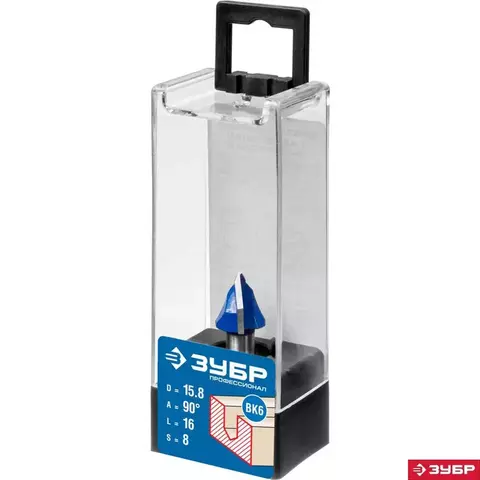 ЗУБР 15.8 x 16 мм, угол 90°, фреза пазовая галтельная V-образная 28752-15.8 Профессионал.