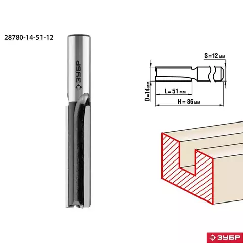ЗУБР 14 x 51 мм, хвостовик 12 мм, фреза пазовая прямая 28780-14-51-12 Профессионал.