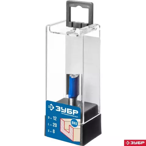 ЗУБР 12 x 19 мм, хвостовик 8 мм, фреза пазовая прямая с нижними подрезателями 28755-12-19 Профессионал.