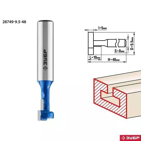 ЗУБР 9.5 x 10 мм, высота 5 мм, фреза пазовая Т-образная №1 28749-9.5-48 Профессионал.