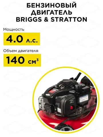 ✔ Надежный двигатель Briggs&Stratton 4,0 л.с. – американское качество, проверенное временем