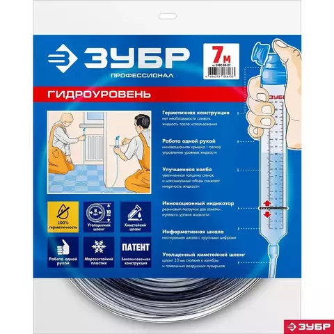 ЗУБР 7 м х 10 мм, гидроуровень строительный 3482-08-07Профессионал