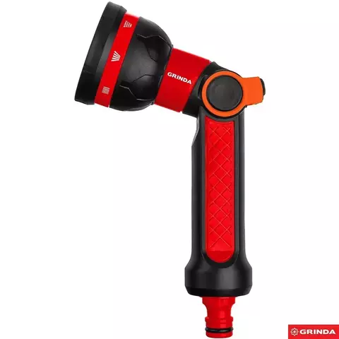 GRINDA 8 режимов, пистолет поливочный двухкомпонентный с регулятором напора N-8 8-427188.
