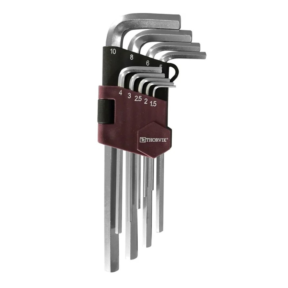 Торцевой ключ-шестигранник от бренда Thorvik – ваш надежный помощник при любых работах! Набор из 9 инструментов (H1.5–H10) облегчит монтажные задачи и обеспечит точное соединение без повреждений креплений. Прочный материал гарантирует долговечность использования, а удобная форма рукоятки обеспечивает комфортную работу даже в труднодоступных местах. Компактная упаковка позволяет легко хранить и брать ключи с собой на объект. Выбирайте качество вместе с Thorvik!