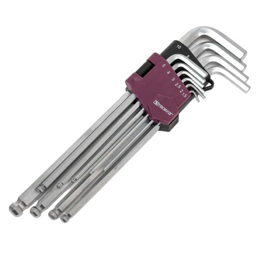 Thorvik HKLB10S Набор ключей торцевых шестигранных удлиненных с шаром, H1.5-H10, 10 предметов 53088.