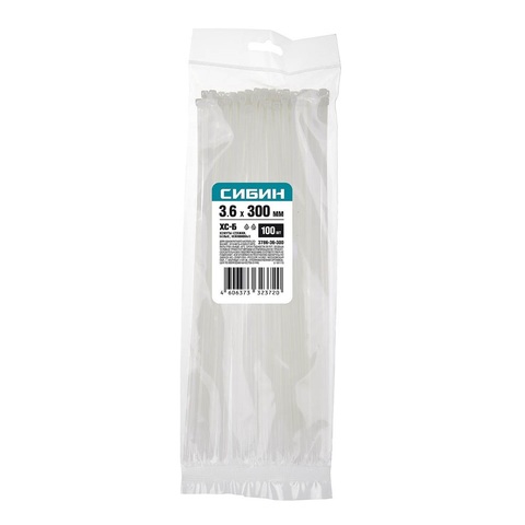 Хомуты-стяжки белые ХС-Б, 3.6 х 300 мм, 100 шт, нейлоновые, СИБИН