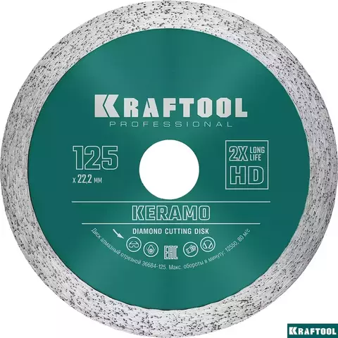 KRAFTOOL Ø 125Х22.2 мм, алмазный, сплошной, по керамограниту, керамической плитке диск отрезной KERAMO 36684-125.