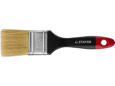 Кисть плоская STAYER "UNIVERSAL-PROFI", светлая натуральная щетина, деревянная ручка, 50мм