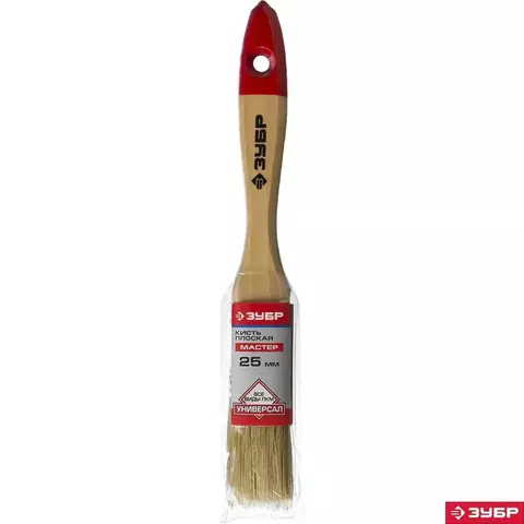 ЗУБР 25 мм, 1'', щетина натуральная светлая, кисть малярная плоская 4-01003-025 Мастер.