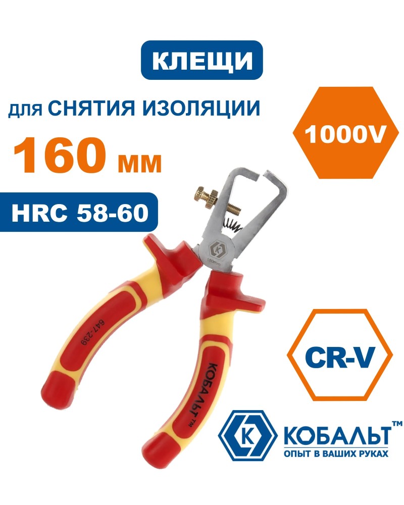 Клещи для снятия изоляции КОБАЛЬТ диэлектрические 160 мм, CR-V (647-239)