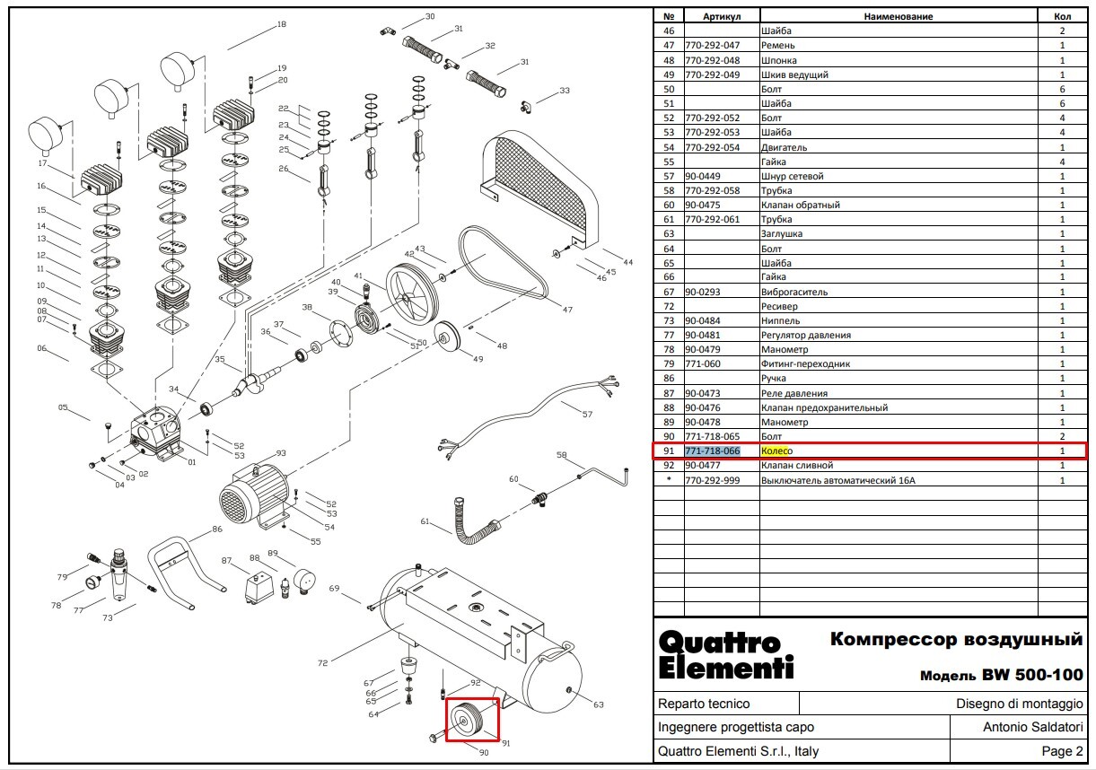 Колесо компрессора QUATTRO ELEMENTI ресивер 100л d-200мм (771-718-066)