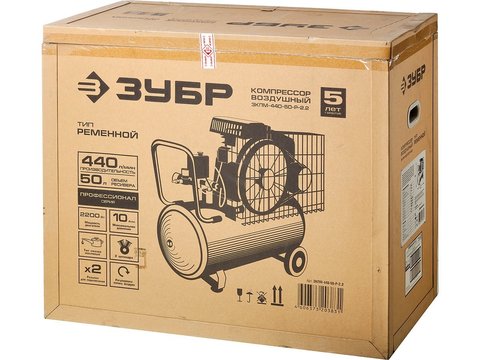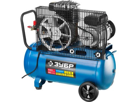 Компрессор воздушный, ЗУБР Профессионал ЗКПМ-440-50-Р-2.2, поршневой, масляный, ременной привод, 440 л/мин, 50 л, 10 Атм, 2200 Вт, 220 В