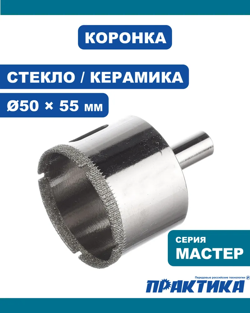Коронка алмазная ПРАКТИКА Мастер по стеклу и керамике 50 мм (777-345)